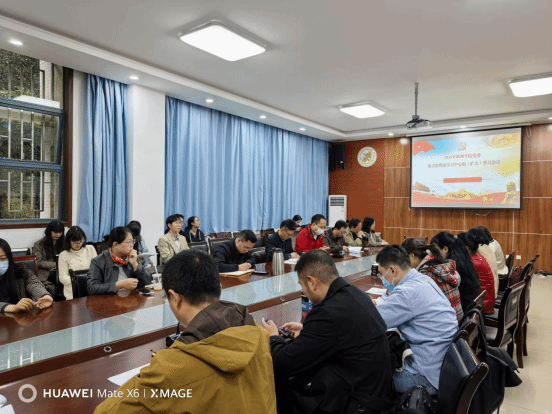 党委召开本年度第13次理论学习中心组(扩大)学习会议,中心组全体成员和全体教职工参加,会议由党委书记郭富庭主持。