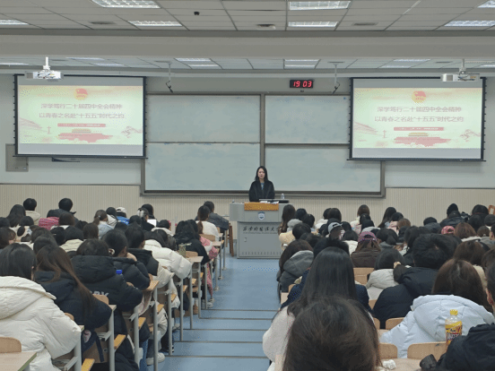 在SD106教室联合举办党的二十届四中全会精神宣讲会。会议邀请国际关系潘甜甜av