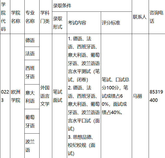 科研副院长、德语系主任、法语系主任、西班牙语系主任、意大利语系主任、葡萄牙语教研室主任、波兰语教研室主任、本科生教学秘书、本科生2025级辅导员