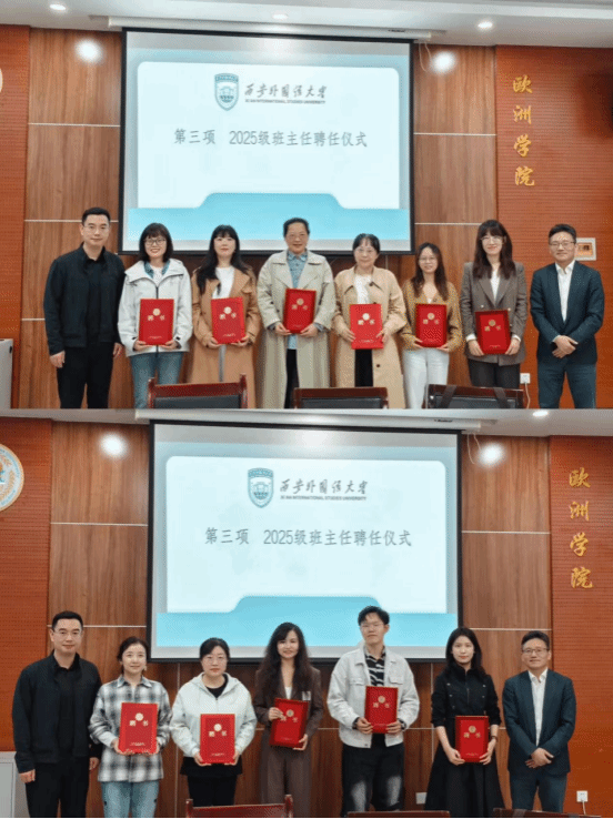 会后,党委书记郭富庭与院长张世胜共同颁发2025级新生班主任聘书,为新生班级管理注入新力量。