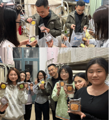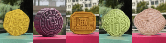 校徽、校门、图书馆、文体馆及大学生活动中心,将熟知的校园场景“浓缩”于月饼之上。同学们纷纷表示,吃到这种极富创意的月饼,是独属于西外的中秋仪式感,现场洋溢着轻松愉悦的节日氛围。
